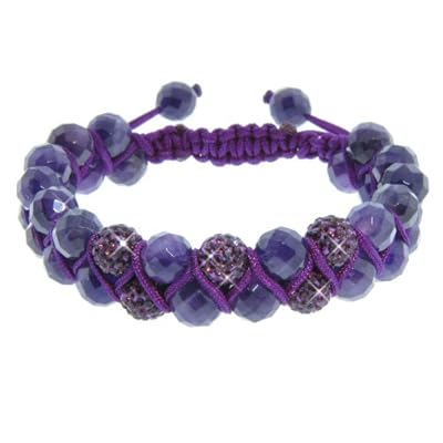 Double Row 8MM Amethyst Gemstone and Purple Czech Crystal Macrame Bracelet